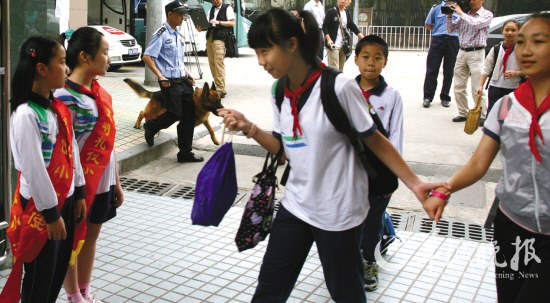 廣州校園安保今早全面升級 警員牽警犬護校(圖)