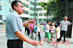天河區培智小學位于天河客運站附近的元崗路上,來往人流較為復雜,學校有小學生和初中生1500多人,主要生源為外來工子弟。昨天下午3時半,這里的學生已在準備放學,門口處有數名行政人員看守。記者一靠近校門,就有一名身穿保安制服的人員迎上前詢問來意。