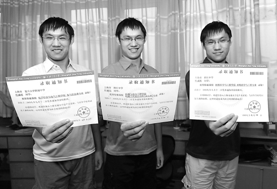 今年高考錄取階段發生了一樁稀罕事,也是大喜事:滬上三胞胎兄弟,齊齊考入上海交大。老大葉誠明,被電氣信息專業錄取;老二葉誠亮,被機械工程專業錄取;老三葉誠輝,被材料科學專業錄取。親戚朋友們都很興奮,表示祝賀,三兄弟卻挺平靜:“我們只是發揮了正常水平,考進名校也是在意料之中!