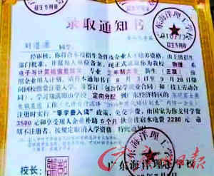 記者發(fā)現(xiàn),這些發(fā)出錄取通知書的學校,全部都提出各種各樣令人心動的優(yōu)惠條件。像某學校的錄取通知書上就寫著“零學費入讀”以及“享受用人單位補助的各種優(yōu)惠政策”。明眼人一看,就知道這些錄取通知書很可疑。
