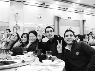 “ 這個是基圍蝦,那個是甜湯”,已經在華中大MBA漢語班學習了一年半的黎巴嫩小伙子Chadi專門為自己起了個中文名字——夏小龍。雖然是第一次參加中國式團年飯,但在他所在的那一桌,儼然一個中國通,不時給同桌留學生報菜名,回答他們的疑問。他笑著告訴記者,他很喜歡吃中國菜,在家鄉時也常去中式餐館吃飯。現在就像過自己國家的節日一樣,很happy(快樂)。