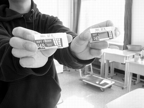 據(jù)市人事局考試中心主任陳雷介紹,首塊作弊橡皮被繳獲后,監(jiān)考人員立即在各考場(chǎng)展開巡查,很快,又有幾塊作弊橡皮露出原形。陳主任說(shuō),這是沈陽(yáng)首次查獲橡皮式接收器,普通屏蔽器無(wú)法屏蔽其接收信號(hào)。