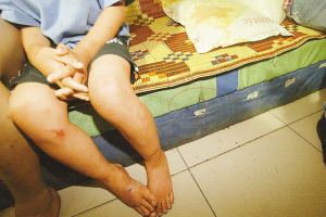 淘淘醒了,怯怯地向媽媽提出想去上學,得到的答復是等過兩天手腳上的傷好了就可以上學了。淘淘下意識地摸了摸腳腕上的傷痕,痛!那是前兩天被父母用繩子綁住而留下的印記。