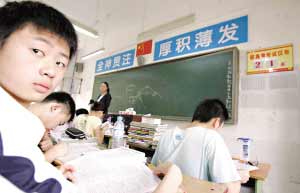 綿陽是四川重災區第一個復課的地區,昨天上午,離開學校已經4天的綿陽中學的高三學生再次走進了課室,熟悉的教室在他們心中變得“搖搖晃晃”,或許高考壓力能讓他們暫時忘記災難、傷痛和恐懼。