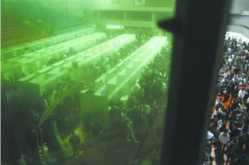 雖然擁有高達9%的年經濟增長率,但國內商業、服務業所能提供的就業崗位仍不能滿足每年新增的就業需求。知識型勞力過剩的情況不能避免的出現了。求職中的學生們來不及考慮這些,他們西裝革履,他們擠出微笑,簡歷中的寸照與期待的面孔疊在一起,等待著命運的垂青。(程啟凌)