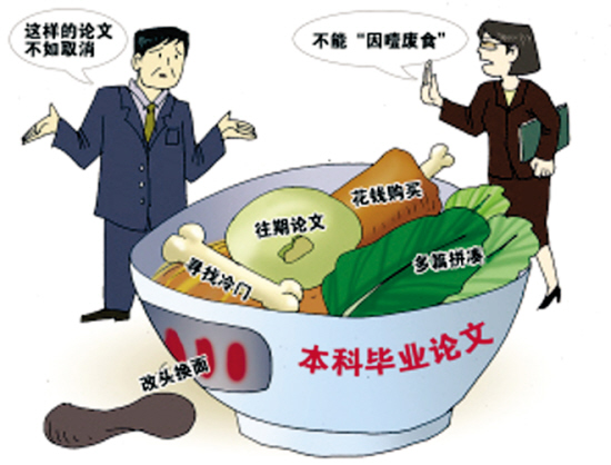 華南理工大學新聞學院05級的小旭談起自己去年寫畢業論文的情形,百感交集:“新聞專業本科畢業論文確實很難在理論上有突破或創新。對于本科生,要對新聞學研究或新聞學史論有什么突破,太勉為其難。”中大新聞系畢業的小鄭認為,“應該取消,我們對新聞的學習只是簡單的學習,做新聞只有在媒體實習中積累實戰經驗;另一方面,很多畢業生的論文都是從網上東拼西湊出來的,對自己的論文根本沒有進行深入的了解。”