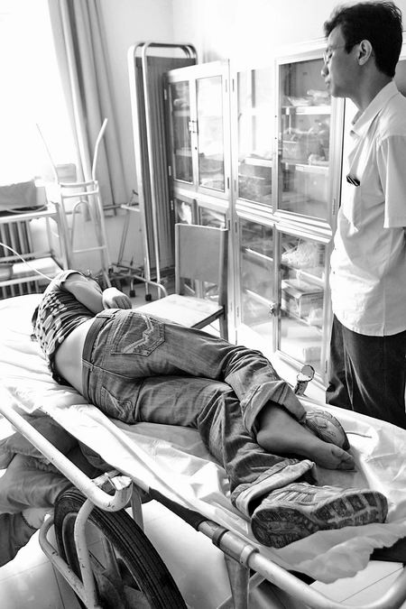 昨日中午12時許,記者在鄭州市第二人民醫院骨外科見到溫彩霞時,她正獨自躺在病床上輸液。經醫生診斷,溫彩霞腰、胸部位出現兩處骨折,此外,多處粉碎性骨折。