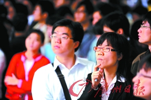 本報(bào)訊 (記者徐靜)經(jīng)過(guò)寒假休整的畢業(yè)生們,為著心中的職業(yè)夢(mèng)想,重新走進(jìn)招聘場(chǎng)。昨日,年后大學(xué)生首場(chǎng)專(zhuān)場(chǎng)招聘會(huì)在廣東工業(yè)大學(xué)大學(xué)城校區(qū)舉行,吸引2萬(wàn)多名畢業(yè)生進(jìn)場(chǎng)求職。從統(tǒng)計(jì)數(shù)據(jù)看,高校畢業(yè)生求職簽約率與去年同期相比有所降低,記者現(xiàn)場(chǎng)采訪發(fā)現(xiàn),不少畢業(yè)班級(jí)求職簽約率還不足三成。
