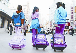 書包太重,只好變成拉桿包。