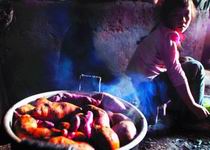 孫家有5畝地,各種一半的紅薯和苞谷,不夠全家5口人和1頭肥豬的口糧,在短暫的雨季,能種一些白菜、青豆和小瓜。旱季來臨,吃的只有早先曬干的白菜,這個時候孫父需要去村外的礦山里打3個月工,每天30元工錢,用來買些大米和供3個孩子入學。