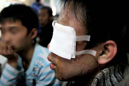 中日聯(lián)誼醫(yī)院的值班醫(yī)生說(shuō),傷者臉部、脖頸等多處被燒傷,臉部已經(jīng)被毀容,眼睛已經(jīng)看不清任何物體,因?yàn)闆](méi)有錢,目前只做了常規(guī)的檢查,從被傷害的程度看,如果不能及時(shí)治療,隨時(shí)有失明可能。聽(tīng)到這個(gè)消息,時(shí)東旭的情緒有些激動(dòng),“我才18啊,我不想瞎啊!”雖然眼睛被紗布蒙住,卻沒(méi)有擋住時(shí)東旭的淚水。
