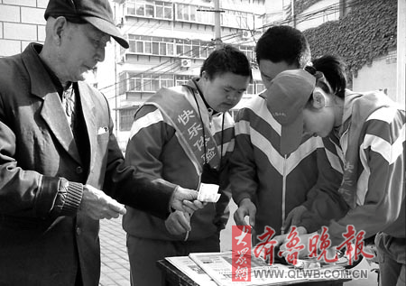 濟南市育園學校是一所專門接收弱智兒童的特教學校。校長楊青青介紹,賣報活動始于職教班數(shù)學老師杜桂芝的一次賣報紙的實驗課。后來考慮到智障孩子要面臨謀生、就業(yè)的問題,學校就把“賣報紙”設為職教班的校本課。四年下來,學生們在賣報中運用數(shù)學知識,溝通、計算能力得到顯著提高,“一直堅持賣報的房琪同學患有腦癱,通過賣報受到啟發(fā)后,他現(xiàn)在每個周末都去廣場賣菠蘿,最好的時候一天能收入幾百元!