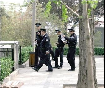 昨天下午2點30分左右,數輛警車停到中國美術館東側一社區花園外。10余名民警沖進花園,直奔花園南門西南角的兩個書包。“警察們圍著書包轉,不停地打電話。”當時在花園的一位老太太說,一名民警悄悄靠近書包用耳朵貼著書包聽,但好像并未發現動靜。隨后,民警開始向花園里其他群眾做調查。
