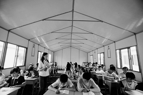 昨天一大早,14歲的王柱良背著書(shū)包重新回到了崇州何家中學(xué)的課堂。與其他重災(zāi)區(qū)的受損學(xué)校不同,這所抗震中學(xué)用的不是帳篷,而是花了一天時(shí)間搭建起來(lái)的彩鋼復(fù)合夾心板房子。