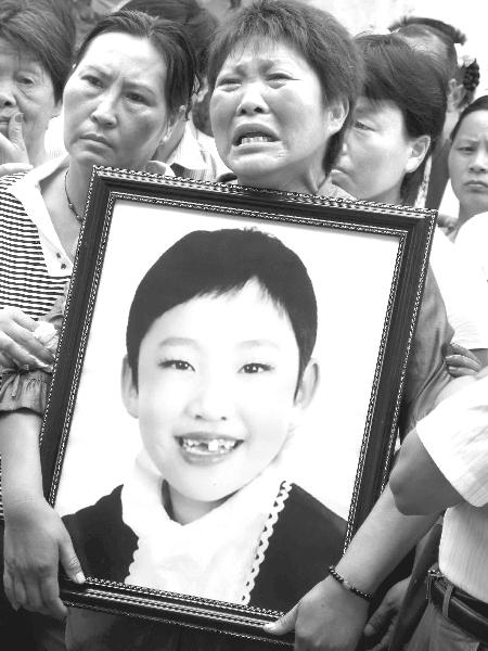 盡管還未開庭,但法庭外已聚集了數百名群眾,其中,受害人的親屬舉著死者生前的照片聲淚俱下地控訴著殺人兇手,不時有群眾擦拭眼淚。“我是專程從10多里外的常莊鄉(xiāng)趕過來的,我要看看這個殺人女教師究竟長什么樣,要看看她為什么要殺害自己年僅8歲的學生。”現場一位老太太說。