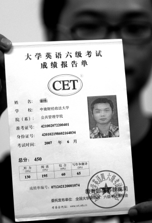 另一個(gè)自稱姓李的假證販子稱,網(wǎng)上查詢時(shí)只能查分,不會(huì)透露分?jǐn)?shù)對(duì)應(yīng)的學(xué)生信息。利用這個(gè)規(guī)則,只要套用了別人的準(zhǔn)考證號(hào)和成績(jī),假證也能在網(wǎng)上查分。不過(guò),由于今年的四六級(jí)成績(jī)還未出來(lái),而網(wǎng)上只能查詢最近一次考試的成績(jī)。因此,想要辦網(wǎng)上查分的六級(jí)證還需等幾個(gè)月。