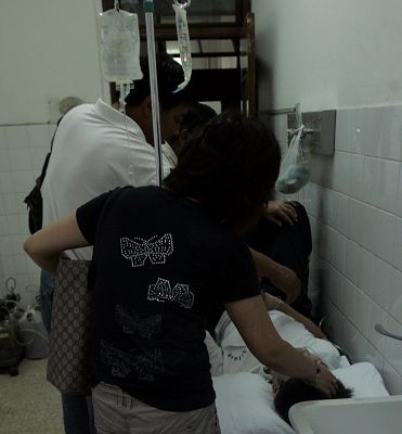 昨日下午2時40分,長海醫(yī)院洗胃室內(nèi),身穿印有復(fù)旦實驗中學(xué)字樣校服的賈偉躺在病床上,已經(jīng)蘇醒,但十分虛弱,無力說話。他的奶奶和父母守護(hù)在病床前,默默注視著。