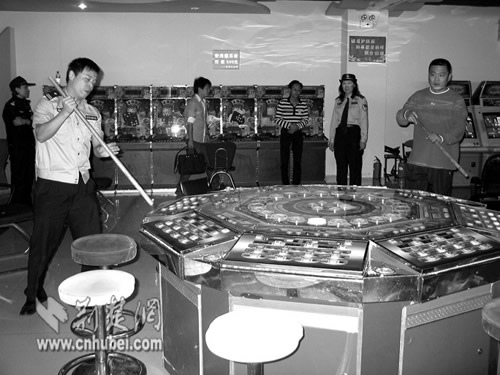 1時(shí)20分,在“獅城網(wǎng)吧”一樓,兩名男子正在賭博機(jī)上押注,民警沖進(jìn)去,將其控制,并將里面的管理人員控制住。隨后,珞獅南路、華師大東門、石牌嶺的4家窩點(diǎn)也先后被搗毀。