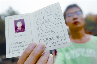 小吳的學生證上清楚地顯示出他的入學時間。記者 熊波 攝