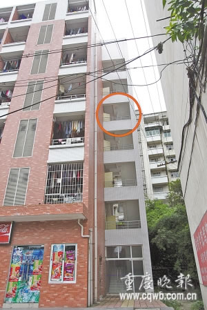 易某從五樓消防通道的窗口跳下身亡 記者 冉文 攝