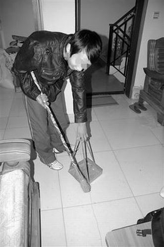 小斌聽說老師來訪,趕緊打掃家里的衛(wèi)生