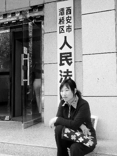 一審庭審時,一學生家長在法院門前茫然無助。王向前 攝