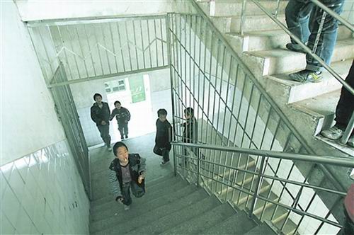 現(xiàn)場:學生像疊羅漢堆樓梯間