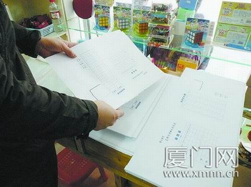 陳同學和蔡同學用的都是文具店里常見的一種白色書皮紙,課本用的是純白的,練習冊因為老師要登記成績,必須用一種印有成績登記表的!靶iL說可以用掛歷紙,不過老師都讓我們用買的那種紙!辈掏瑢W說。