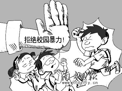 在學校方面,要制定切實可行的各項管理制度。制定校園傷害危機處理方案和處理流程,正確引導學生的學習和生活,及時發現容易引起校園暴力的現象和苗頭, 提前介入,及時矯正,把矛盾消滅在萌芽狀態。同時,還要加強學校的保衛力量,強化校園治安管理。同時要充分利用社會力量關心下一代。