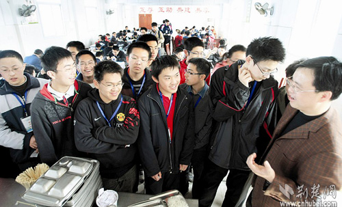 這些學(xué)生代表著中國中學(xué)生數(shù)學(xué)最高水平,他們將在武鋼三中進(jìn)行為期18天的集訓(xùn)和考試,最后6名勝出者將進(jìn)入國家隊,代表中國參加今年7月在德國舉行的第50屆國際數(shù)學(xué)奧林匹克競賽。