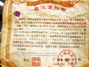 一直以來,成績不錯的徐洋都是父母的驕傲,剛剛放暑假,想到下學(xué)期就要初三了,徐洋決定在家里看看書。前兩天,小區(qū)的門衛(wèi)突然打電話來說他有份錄取通知書剛剛寄到,讓他去取。等拿到錄取通知書后,徐洋懵了,通知書是由廣東東南科技學(xué)校寄出的,上面赫然寫著,“現(xiàn)正式錄取你為本校三年制電子技術(shù)與計算機科學(xué)應(yīng)用專業(yè)大專(正取)新生”。