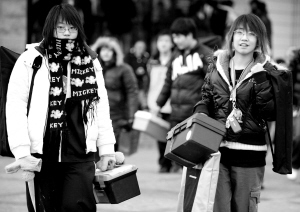 昨天8時(shí),北京城市學(xué)院考點(diǎn)前已擁擠著近百名冒著嚴(yán)寒陪考的家長,一些手提畫板、顏料盒等繪畫用具的考生陸續(xù)走進(jìn)考點(diǎn)。據(jù)了解,網(wǎng)上報(bào)考美術(shù)類專業(yè)的考生為7130人。首都師范大學(xué)、北京工業(yè)大學(xué)、北京服裝學(xué)院、北京城市學(xué)院4所高校設(shè)有考場。