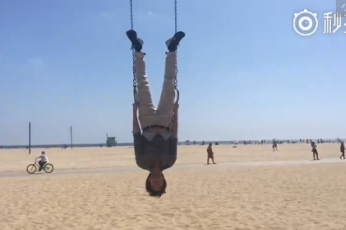 王力宏吊環上練倒立