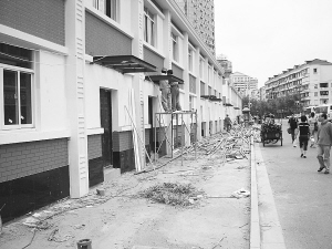 人行道上蓋起一排房屋,行人只能走到馬路上,汽車、助動車不時擦身而過,險象環生。昨天,讀者殷先生致電本報,反映南車站路西側人行道上突然“長出”一排房屋。