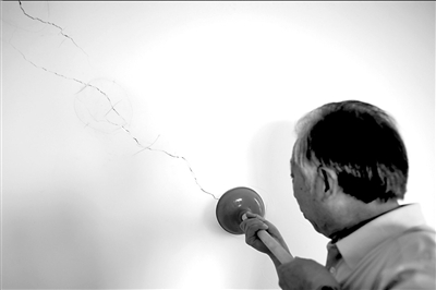 “這墻都裂透了,”楊先生說,家里的承重墻幾乎都有裂縫,而且逐年變寬。“不是有‘樓歪歪’‘墻脆脆’嗎,我們家這就是‘墻裂裂’。”他自嘲地說。