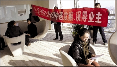 業主指責SOHO失信 打橫幅勸人不要買潘石屹房子