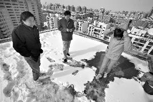 昨日上午,朝陽區(qū)華展國際公寓20余業(yè)主爬上C座15樓頂天臺(tái)“抗議”小區(qū)不供暖,要求相關(guān)部門立即解決小區(qū)供暖僵局。