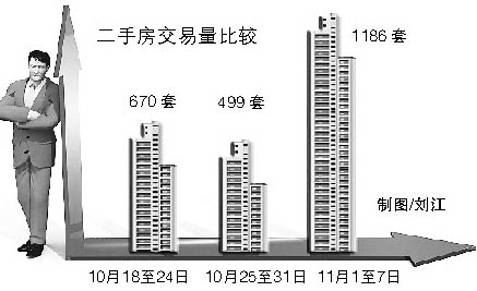來自房地產交易管理網的數據顯示,上周,北京二手房住宅成交量為1186套,比10月第四周上漲137%,比10月第三周上漲77%。