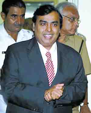 圖:身價430億美元、在福布斯榜上名列第5的印度富豪穆凱什·安巴尼。由其掌控的信實集團(tuán)把握著印度諸多經(jīng)濟(jì)領(lǐng)域的命脈,2002年時該財團(tuán)的總資產(chǎn)相當(dāng)于印度GDP的3.5%。圖片來源:北京晚報