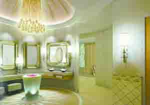 包括一個能容納168輛車的地下停車場在內(nèi),這座27層豪宅內(nèi)有高4層的室外空中花園、9部電梯的酒店式大堂、天花板掛滿水晶燈的宴會廳以及配備了人工制雪裝置的乘涼室等。由于每層間隔及用料絕不重復(fù),因此造價比同樣規(guī)模的酒店和寫字樓還要高。 (楊凌)
