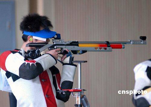 2007年10月26日,第六屆全國(guó)城市運(yùn)動(dòng)會(huì)“人保財(cái)險(xiǎn)”杯射擊比賽在武漢關(guān)山射擊培訓(xùn)中心鳴槍開賽。來自溫州市代表隊(duì)運(yùn)動(dòng)員朱啟南以703.7環(huán)的總成績(jī),輕松奪得男子10米氣步槍60發(fā)決賽金牌,超過702.7環(huán)的世界紀(jì)錄和703.4環(huán)的全國(guó)紀(jì)錄;石家莊市代表隊(duì)運(yùn)動(dòng)員張強(qiáng)獲銀牌,杭州市代表隊(duì)運(yùn)動(dòng)員吳佳寧獲銅牌。中新社發(fā) 楚天行 攝