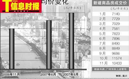 “過山車”,以這項運動的感覺來形容2007年的廣州樓市是最好不過了,但車中人是刺激,歡喜,還是擔憂,則因人而異。據廣州市國土房管局統計顯示,截至去年11月廣州市新建商品房成交均價已上升到10433元/平方米,比前年同期漲了3244元/平方米,升幅45.12%!但到了11月底和12月份,不少地產商或明或暗降低了價格。