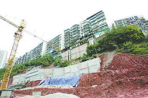 一年前,施工隊陸陸續續地來到這里,將這里的常青樹一一砍倒。接著,施工隊開來推土機,鏟平了小土坡。他們用了一天的時間,就在這里搭起了一整片工棚。居民們聽說,這里將建起一幢高達16層的樓房,一個叫重慶市運發房地產開發有限公司的單位則是樓盤的承建者。