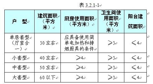 2.2.1 公共租賃住房戶型設(shè)計(jì)面積標(biāo)準(zhǔn)如下表3.2.1-1