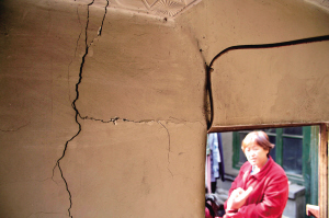 從今年7月開始,二街社區一些居民相繼發現自家平房墻壁和地面開裂。記者昨天在二街西醋房胡同2號院的張女士家中看到,房屋多處墻壁結合處確有裂縫,裂縫從地面貫通到房頂,寬處約有半厘米。開裂嚴重的兩間房已經被騰空了。