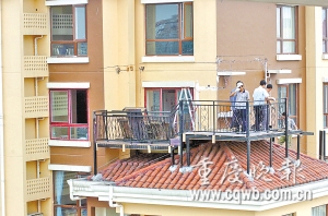 小區物管公司技術部人員也在現場幫忙,他們說,由于“吊腳樓”地處32樓高空,又懸在一尖角屋頂上,拆除起來難度較大,“預計還要一天才能拆完。”
