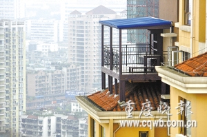昨天中午,記者在該小區看到,“最牛吊腳樓”所在的5棟樓下拉著警戒線,幾個業主仰頭張望,說:“拆了我們就放心了。”在32樓該業主屋內,五六個工人正忙著鋸木頭柱子,藍色棚頂已拆除,雕花鐵藝欄桿和木頭桌椅也已移走。現場工人告訴記者,他們的拆除工作是從前天下午開始的。由于“吊腳樓”面積近20平方米,木頭柱子還用水泥焊住,“拆起來比修起來還麻煩。”