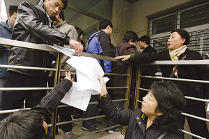 昨日上午,記者來到位于崇文區東花市北京市房地產交易中心開設的窗口,這里是以往全市惟一辦理經適房購買資格審核的地方。但在昨日,過去門前發放排隊號的辦公桌已經不見,關閉的大門前,3名工作人員站成一排,“已經不接受審核表了,要辦的話去戶口所在地的區縣申請。”工作人員對前來咨詢的市民說。