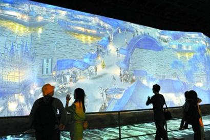 在其看來,這幅會“動”的清明上河圖,表現了宋代汴京的繁華景象,當年的小康生活、和諧生活的理念也隨之得到表現,每個人會走、會動、喝酒、聊天,這是利用現代技術把它做出來的。里面的水也是通過光效作用制成的,不是真正的水。