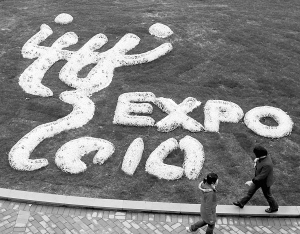申城街頭迎世博的氛圍越來越濃。在延安中路華山路口一處新建的綠地上,由細白石做成的世博標志景觀格外引人注目,石中還專設了節能燈泡,晚間也能閃爍泛光,成為一道迎世博的特別風景。(肖健)